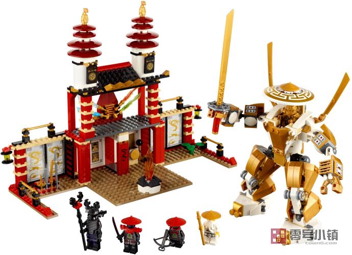 保卫忍者王国领土的最终史诗战斗拉开了序幕!将吴大师和黄金忍者劳埃德带到光明殿深处。偷偷绕过伽玛当王和他的爪牙,将4把元素刀放置在殿宇中心。结合他们的元素力量,唤醒黄金机械进行最终战斗!打开庙宇,跳上黄金机械的驾驶舱,用黄金机械剑武装你自己,为了忍者王国的自由而战!包括黄金机械和5个小人仔,带武器:劳埃德(黄金忍者)、伽玛当王、吴大师、侦察兵和武士。