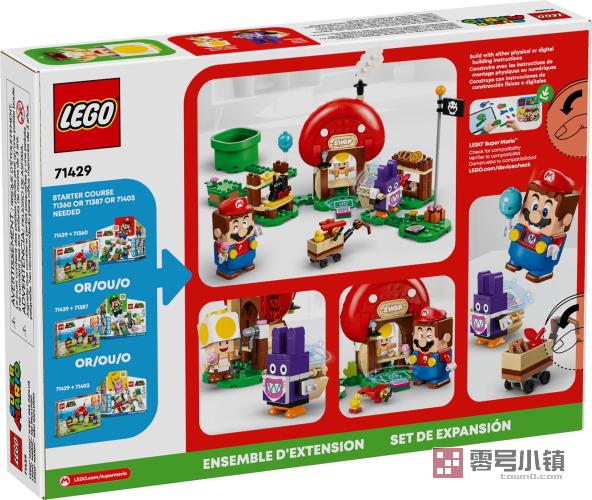 玩乐这款具有收藏价值的乐高®超级马力欧™扩展关卡 (71429),前往奇诺比奥商店。本套装可作为 7 岁及以上超级马力欧™粉丝任何时候的礼物,其包含 2 个积木拼搭的超级马力欧角色:黄色奇诺比奥和偷天兔,以及一家可以拼搭的商店(带有各种玩具/食物配件)、一辆购物车,可供启发创意角色扮演。