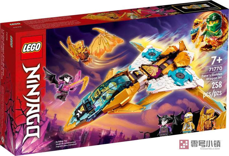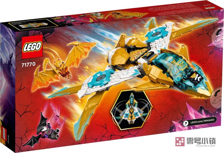 这款拼搭套装包含 3 个小人仔:黄金神龙寇,配有一副带长刺的黄金龙翼,以及黄金赞和范吉利斯将军,可供孩子们在幻影忍者城市中进行扣人心弦的善恶之战。