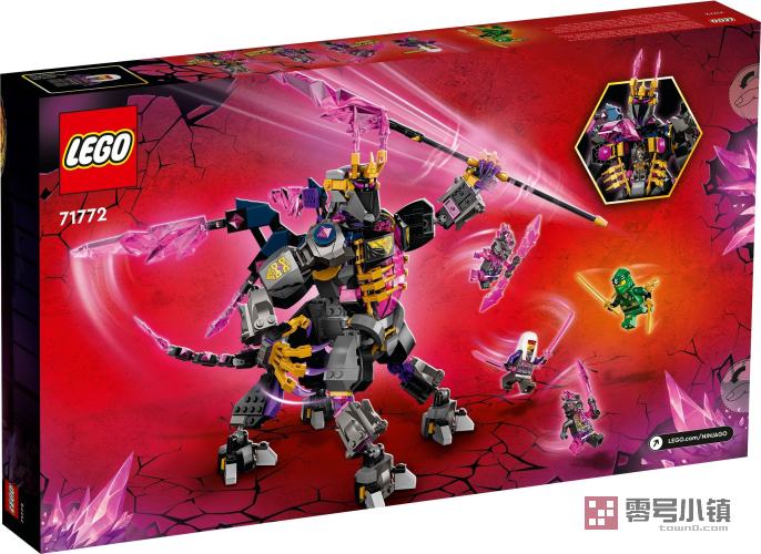 玩乐这款水晶之王 (71772) 玩具套装,孩子们可以表演电视剧《NINJAGO®: Crystallized》中的扣人心弦的场景。水晶之王的外形为半人马,肢体灵活,拥有 4 条腿、2 只手臂、一副飞翼、一把大宝剑,以及胸口上的平台,可以拼放一个小人仔。可作为 9 岁及以上孩子的很棒礼物。