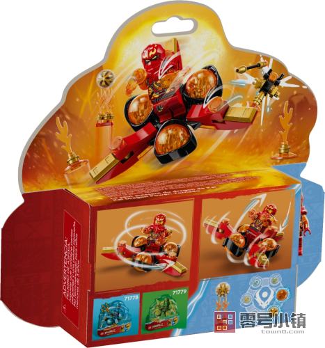 孩子们可以把龙力凯放入旋转机,然后碰撞它的一条手臂,就可以看着凯表演后空翻了。他的任务是绕开火焰障碍,击败帝国机器人,并从火焰支架顶部夺取具有收藏价值的黄金神龙能量核组件。本套装包含一个橙色的龙力组件,孩子们还可以从其它幻影忍者套装中收集 4 个不同颜色的龙力组件。