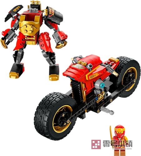 玩乐这款行动丰富的凯的机甲战车 EVO (71783) 玩具套装,7 岁及以上的小拼搭师和酷车爱好者可以上演属于他们自己的正邪之战。本套装包含一个肢体灵活的机甲和一辆很酷的摩托车,可以为摩托车增添黄金侧面板和黄金大刀,使其升级为更加强大的模型。