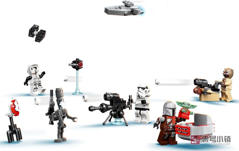 这款圣诞倒数日历包含 7 个乐高小人仔/人偶/机器人:身穿节日服饰的曼达洛人和尤达宝宝 (Grogu),以及侦察兵、冲锋队员、塔斯肯袭击者、IG-11 机器人和 IT-O 逼供机器人。孩子们会喜欢上拼搭和玩乐这些迷你模型,如剃刀冠号、TIE 战斗机、塔斯肯袭击者的雪球发射器、训练用靶子和尤达宝宝 (the Child) 的悬浮式婴儿车。