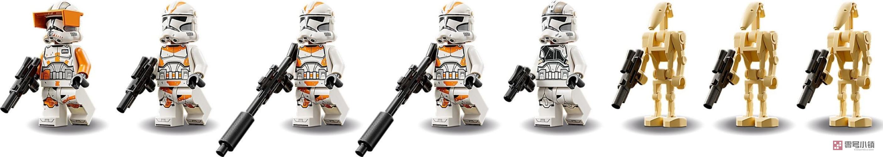 这款套装包含 5 个乐高小人仔:指挥官科迪、212 军团克隆人炮手和 3 名 212 军团克隆人士兵,可用来对战 3 个战斗机器人和一只可以拼搭的矮蜘蛛机器人,还有各式各样很酷的武器。可从包装盒和乐高®拼搭说明应用程序中找到拼搭说明,后者还拥有交互式查看工具,有助于增强创造体验。
