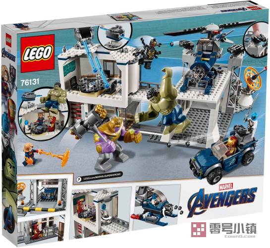 玩乐这款乐高®漫威复仇者联盟拼搭玩具套装,上演一场精彩激烈的 76131 复仇者联盟总部大决战,击败 Thanos!这座复仇者联盟总部拥有一座带会议室的两层办公楼,会议室中放有一个带有秘密武器隔间的工作台;以及一个可打开的“激光束”保险箱、直升机停机坪、车库、屋顶弹簧加压发射器和双射钉枪,以及一个可旋转和倾斜的雷达。这款深受欢迎的拼搭玩具套装还包括一架可拼搭的直升机,其配有可调节和旋转的旋翼及 6 连发速射器;一辆配有可旋转炮塔的越野车,炮塔上设有双射钉枪。与这 4 个小人仔——Ant-Man 微型人仔 (microfigure)及灵活的 Hulk 和 Thanos 大人仔——一起玩乐,演绎《复仇者联盟》系列电影中扣人心弦的场面。