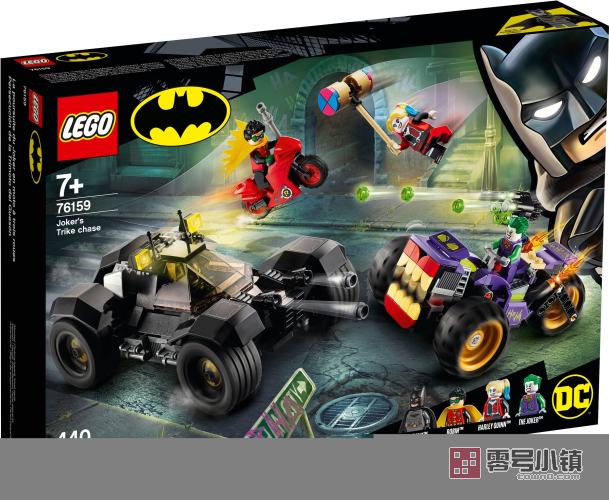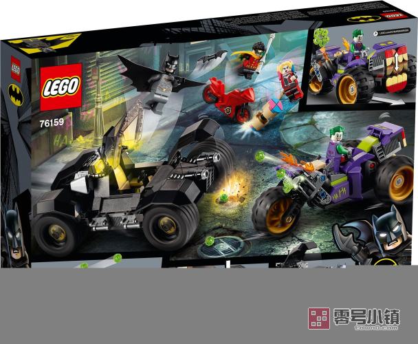 这款乐高® DC 蝙蝠侠小丑三轮摩托车 (76159) 玩具套装包含标志性的汽车、很酷的武器和源自《蝙蝠侠》电影的深受喜爱的角色,可作为孩子的一份快速移动式蝙蝠侠对战小丑礼物。