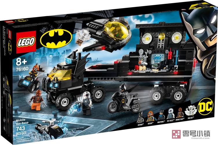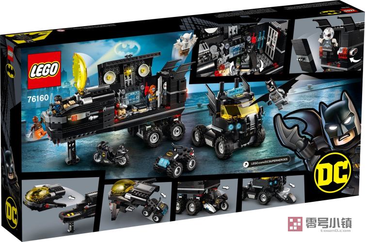 这款乐高® DC 移动式蝙蝠基地 (76160) 包含 5 种标志性交通工具、各式炫酷武器及大量配件。这款套装包含 6 个源自《蝙蝠侠》电影的乐高 DC 小人仔,为孩子们探索激动人心的蝙蝠侠冒险世界准备好了一切! 乐高蝙蝠侠蝙蝠洞玩具套装——移动式! 孩子们可以与蝙蝠侠、蝙蝠少女 (Batgirl) 和夜翼一起追捕臭名昭著的超级坏蛋急冻人、人蝠和铜虎。这款高科技的移动式蝙蝠基地包含各种激动人心的隐藏功能:从拖车上拆下蝙蝠喷气式飞机,展开它的机翼;当喷气式飞机着陆时,可以驱动蝙蝠四轮摩托车驶出后部机舱;解开卡车后部的摩托车;触碰开关,从卡车前部放下水上摩托车......甚至在车上还设有囚禁坏人的牢房,以及坏人逃跑时用的爆炸功能。 蝙蝠侠拼搭玩具和动作小人仔 拼搭乐高 DC 蝙蝠侠玩具套装,把《蝙蝠侠》电影中经典精彩的乐趣带回家。