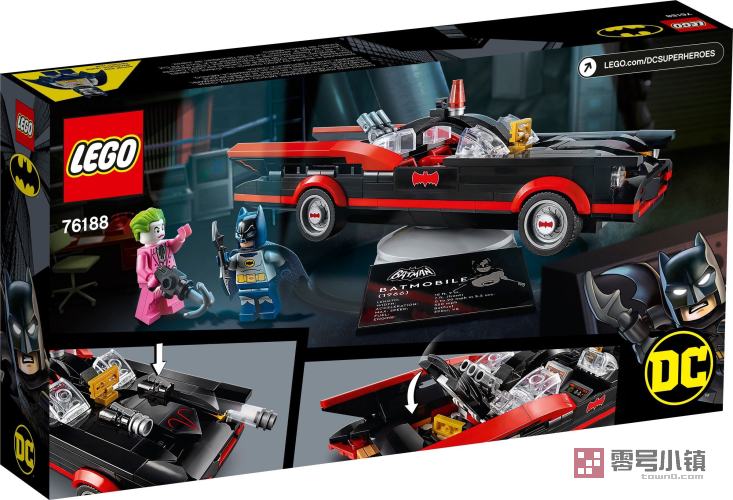 乐高® DC 蝙蝠侠:蝙蝠侠经典电视剧系列剧集蝙蝠车 (76188) 能够为孩子带来 1966 版《蝙蝠侠》电视剧中的风格、行动和惊心动魄的感觉。这辆标志性的机车充满很酷的功能,可拼搭在旋转式展示台上。经典的蝙蝠侠车辆和小人仔借助这辆令人眼前一亮的蝙蝠战车,以及源自原创电视剧的蝙蝠侠和小丑小人仔,孩子们可以进行丰富多彩的蝙蝠侠大冒险。这辆超酷的机车拥有可打开的后备箱,内装有蝙蝠镖,还配有额外的积木颗粒,孩子们可以使用它们定制汽车的发动机盖,根据喜好选择有无凸粒发射器。行动结束后,可将蝙蝠战车展示在旋转式展示台上——孩子们展示他们超酷打击犯罪车辆的理想方式。