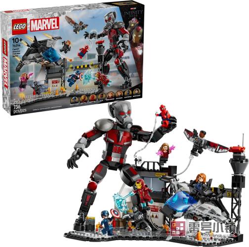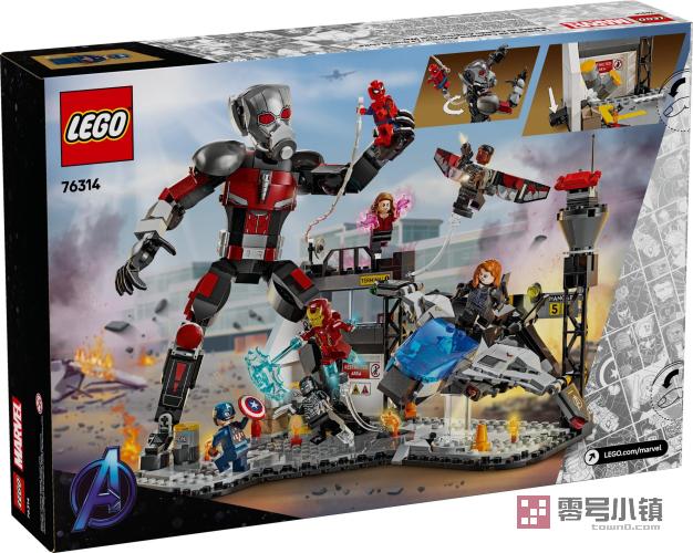 这款可以拼搭的玩具套装源自漫威影业《美国队长:内战》中的机场大战场景。本套装包含 8 个小人仔:美国队长、冬日战士、旺达、猎鹰、钢铁侠、蜘蛛侠、黑寡妇和黑豹,各式武器和配件,以及身高超过 24 厘米(9.5 英寸)的完全铰接式蚁人。昆式战斗机拥有折叠式机翼和可以打开的驾驶舱,驾驶舱内可容纳小人仔飞行员。机场场景中的油桶爆炸功能进一步增强了战斗效果。孩子们可以使用数字化 LEGO Builder 应用程序在拼搭过程中缩放和旋转模型。