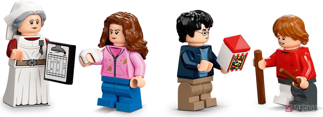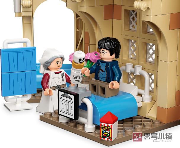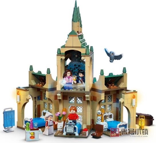 玩乐这款功能丰富的玩具套装,其设计灵感源自《哈利·波特与阿兹卡班的囚徒》中令人难忘的场景,小男巫和女巫们可以与哈利·波特、罗恩·韦斯莱和赫敏·格兰杰一起进行冒险。霍格沃茨校医室内设有 3 张床、一个屏风,还有推着医疗小车的庞弗雷夫人,车上满是魔药和糖果。罗恩躺在床上,腿上打着石膏,手里拿着令人作呕的生骨灵。同时,哈利和赫敏正在钟楼上使用时间转换器。孩子们可以转动塔楼使时钟指针旋转,让时光倒流,踏上另一段魔法之旅。这款套装的顶部和底部可以拆离,所以可以在它们之间加入其它模块。此套装可以与本系列的其它套装组合,创造一整座霍格沃茨城堡。