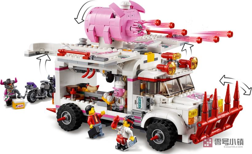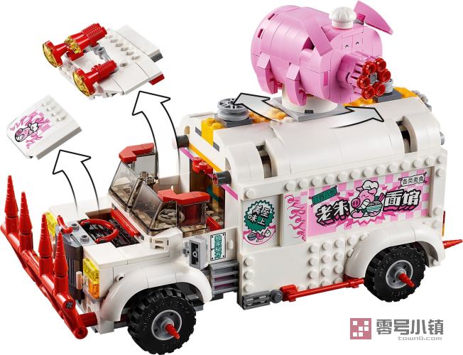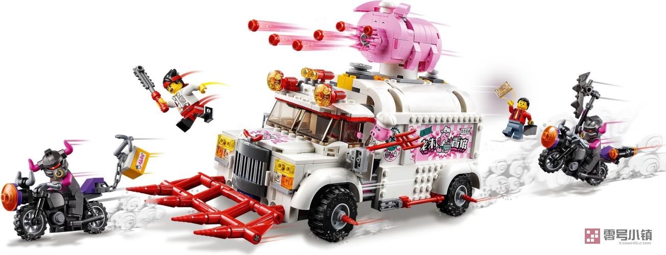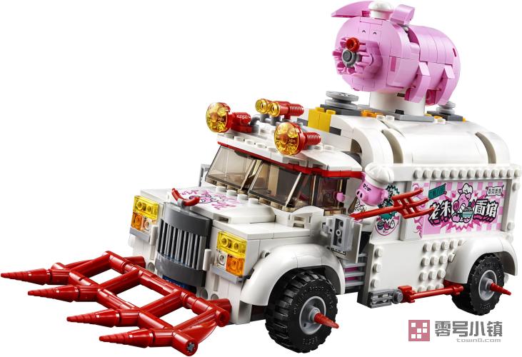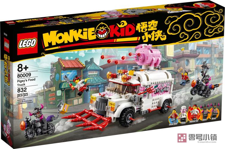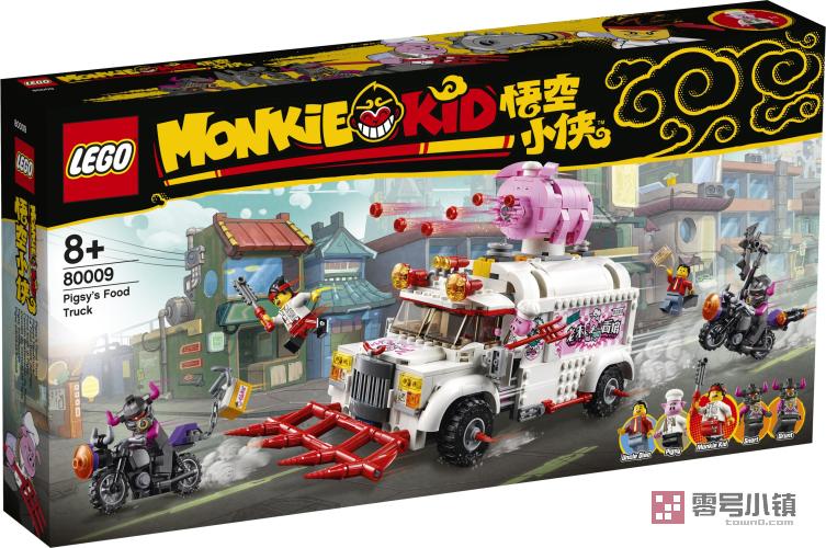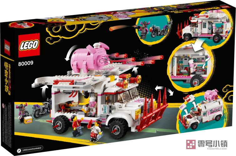 这款乐高®悟空小侠玩具套装 (80009) 包含朱大厨移动钉耙车和偷食物牛杂兵的 2 辆可拼搭式摩托车,能够带来丰富多彩的大冒险。这款乐高快餐车玩具侧边可以打开,便于进入厨房和指挥中心。粉丝们会喜欢上系列有趣的功能,比如车内的假冰箱(内藏有武器)和车顶的猪形速射器。可作为孩子的一份超棒礼物,其包含 5 个可收藏的玩具小人仔,非常适合进行精彩有趣的角色扮演。
